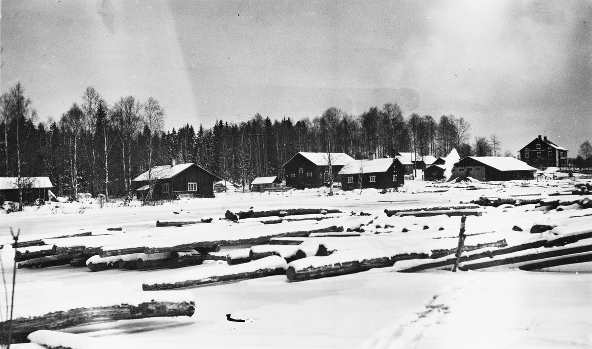 Från vänster: badstuga, snickarstuga, stalldrängskällare, svinhus, stall och vagnsbod med ränne, drängstuga och brugghus, vedskjul, iskällare, skråhus, fårhus och hönshus, ladugård, loge och lador samt bostad och brukskontor (byggd 1812).