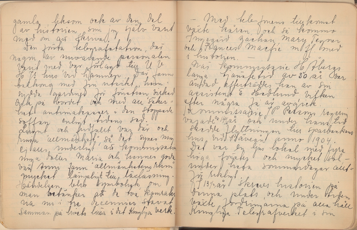 Dagbok "Under flydda år Uddevalla telestation 1920-1959", skriven av telefonisten Elsa Carlsson under åren 1920-1959 då hon arbetade på Uddevalla telestation. Dagboken ger en unik inblick i dåtidens samhälle och arbetsliv utifrån pressklipp, fotografier och dagboksanteckningar.