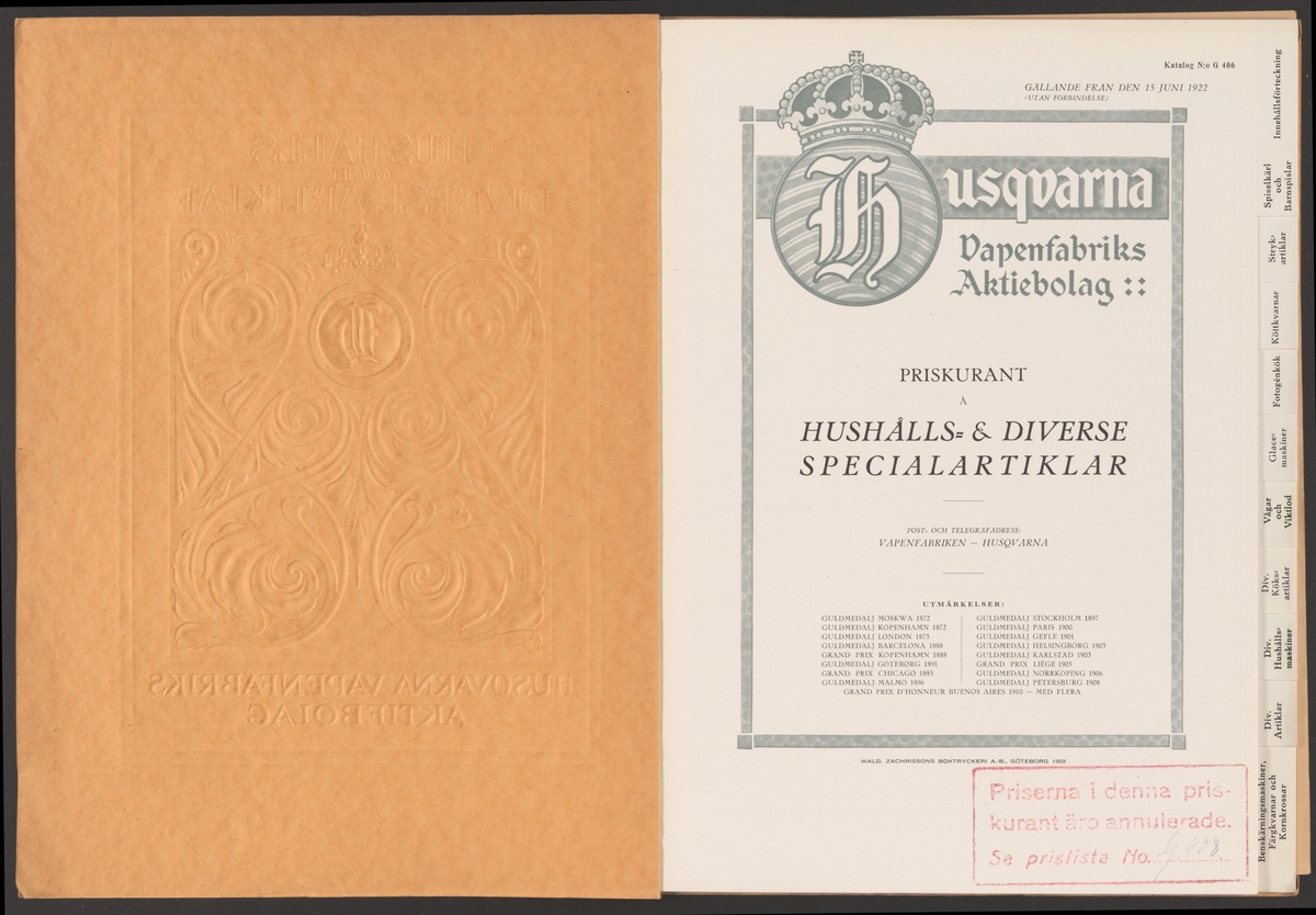 Titel: Husqvarna vapenfabriks kronologi. Ur Carl Sahlins bergshistoriska samling.
