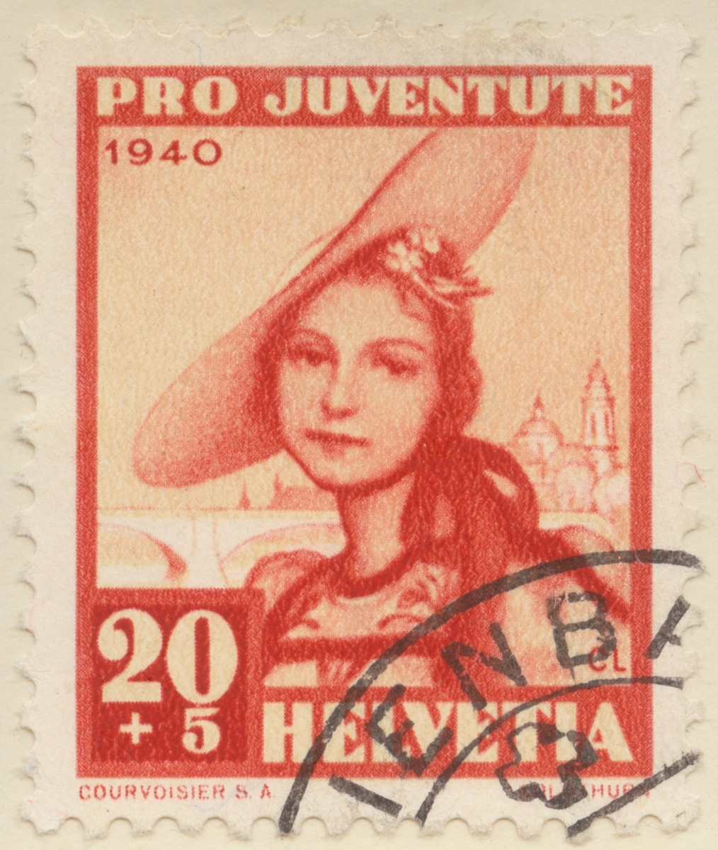 Frimärke från Schweiz, 1940. Motiv av kvinnodräkt, Solothurn.