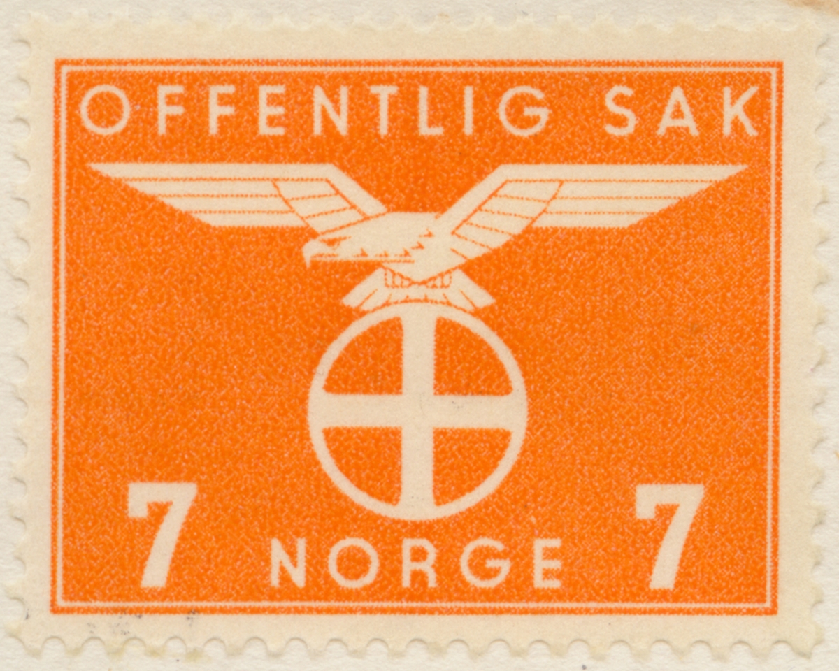 Frimärke från Norge, 1942. Motiv av Örn över Sol-Kors = Norska Nazistpartiets emblem.