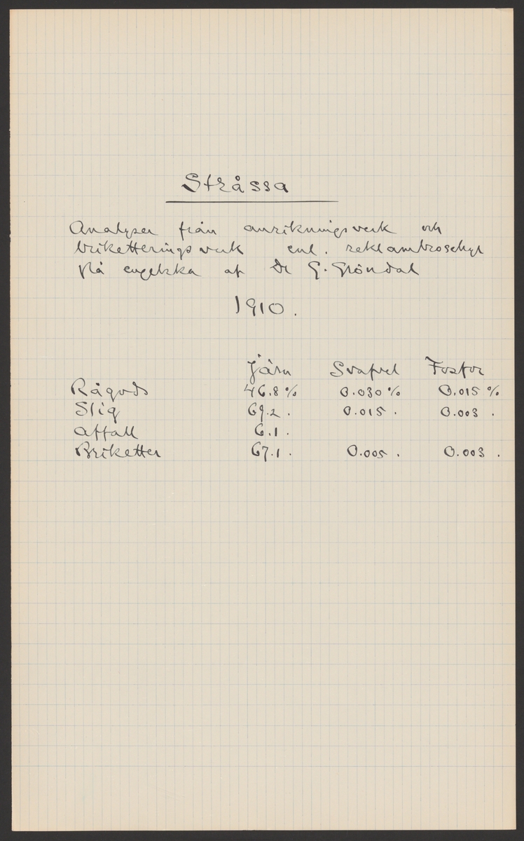 Titel: Stråssa gruvfälts kronologi. Stråssa gruva. Ur Carl Sahlins bergshistoriska samling.
