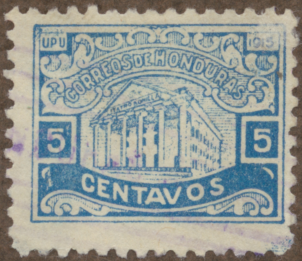 Frimärke från Honduras, 1915. Motiv av Bonilla -Teatern