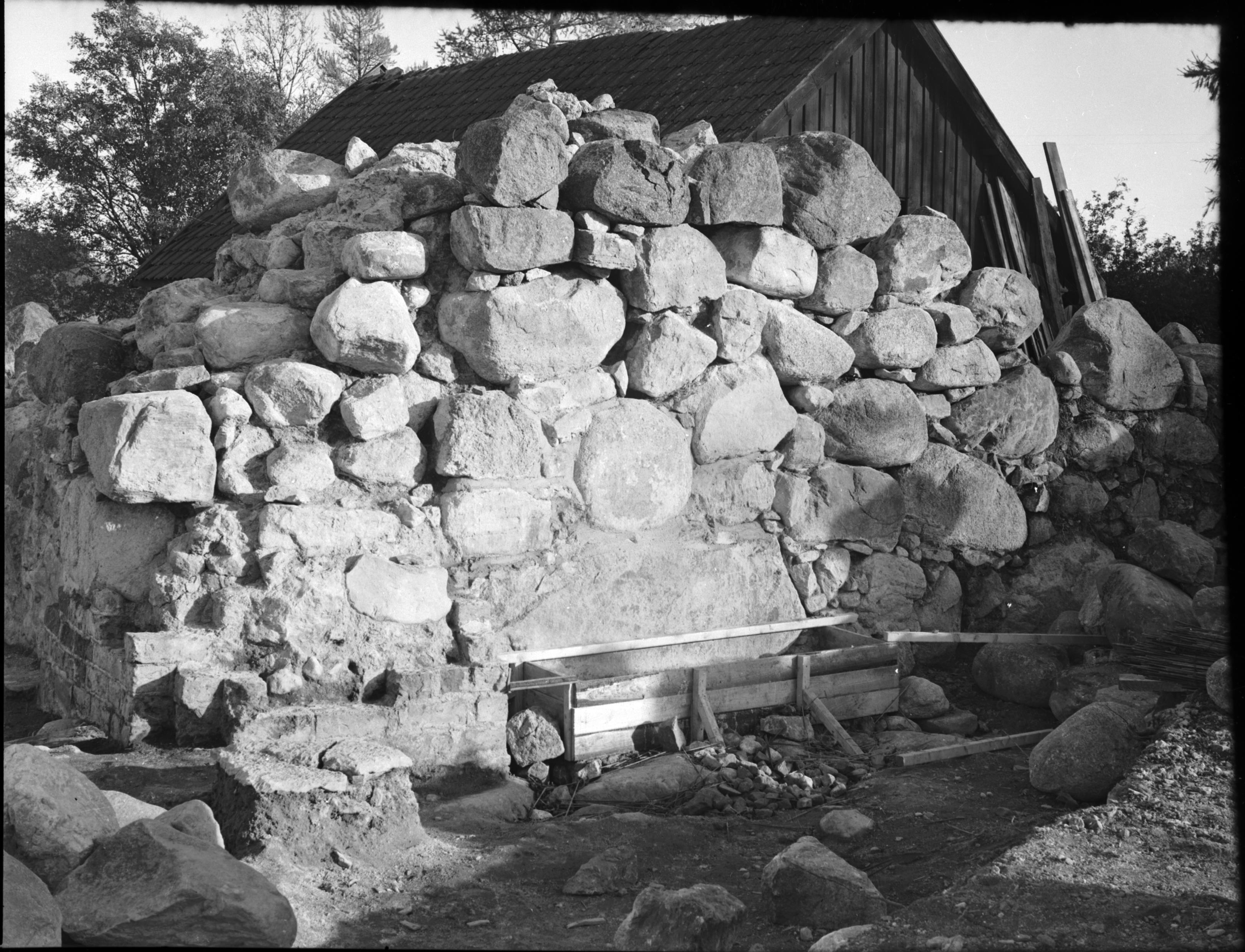 Fog mellan korets södra vägg och södra sidoskeppets östra vägg, från nordväst.