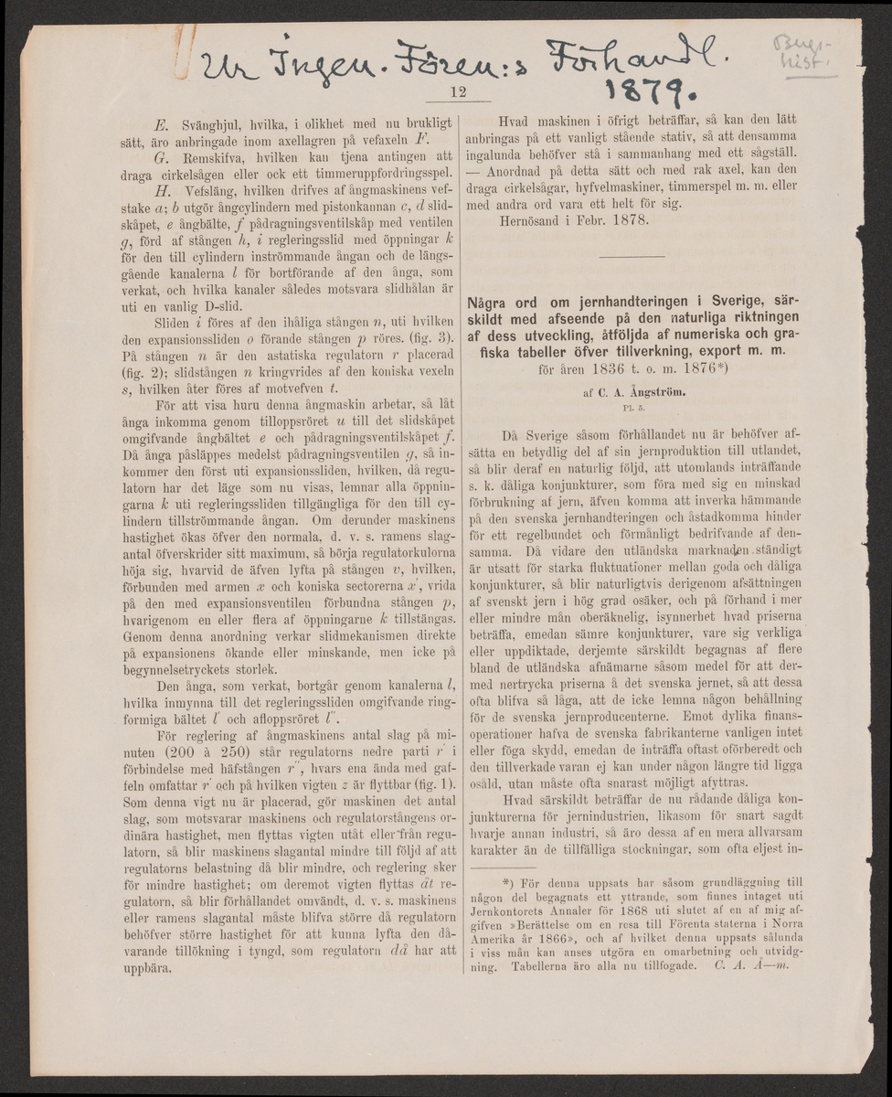 Ämnesordnade handlingar av bergshistoriskt och bergstekniskt innehåll.