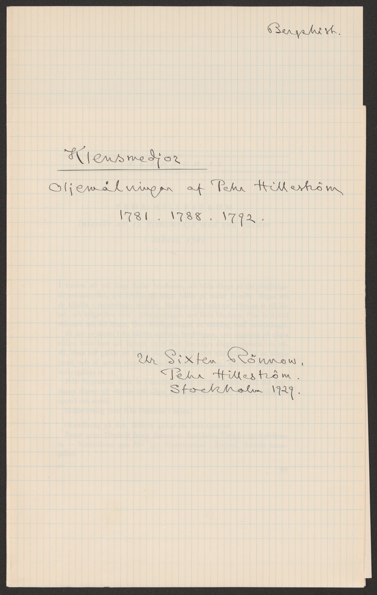 Titel: Diverse allmänt om bergshistoriskt material. Ämnesordnade handlingar av bergshistoriskt och bergstekniskt innehåll. Ur Carl Sahlins bergshistoriska samling.