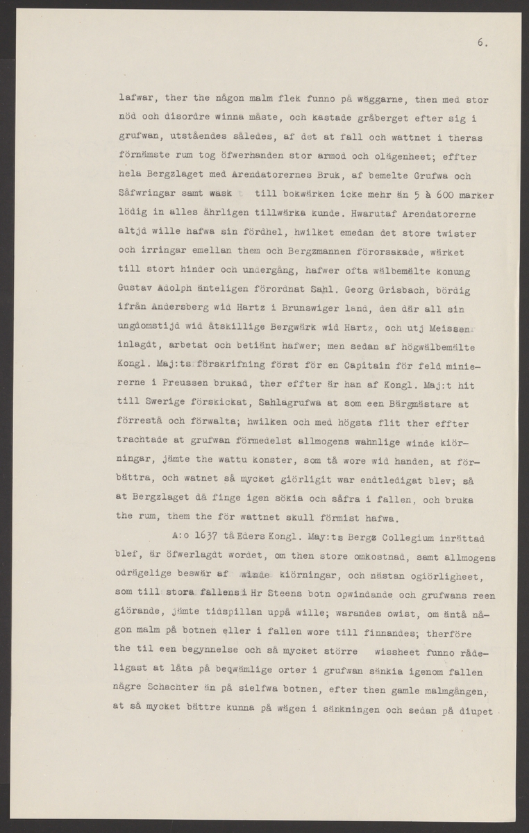 Titel: Sala gruva och silververks kronologi. Sala Silvergruva. Ur Carl Sahlins bergshistoriska samling.