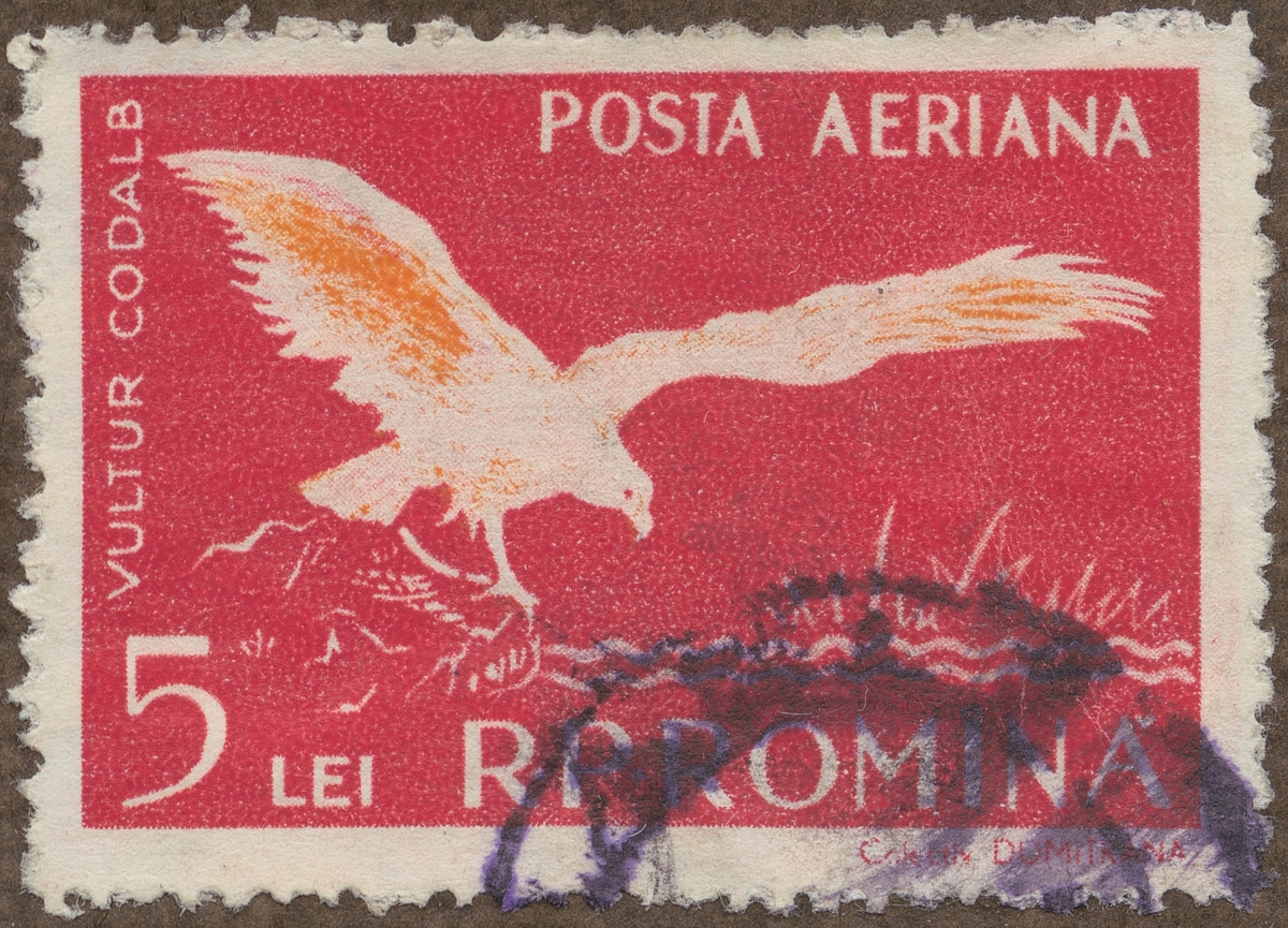 Frimärke från Rumänien, 1957. Motiv av Havsörn som flygsymbol Luftpost.