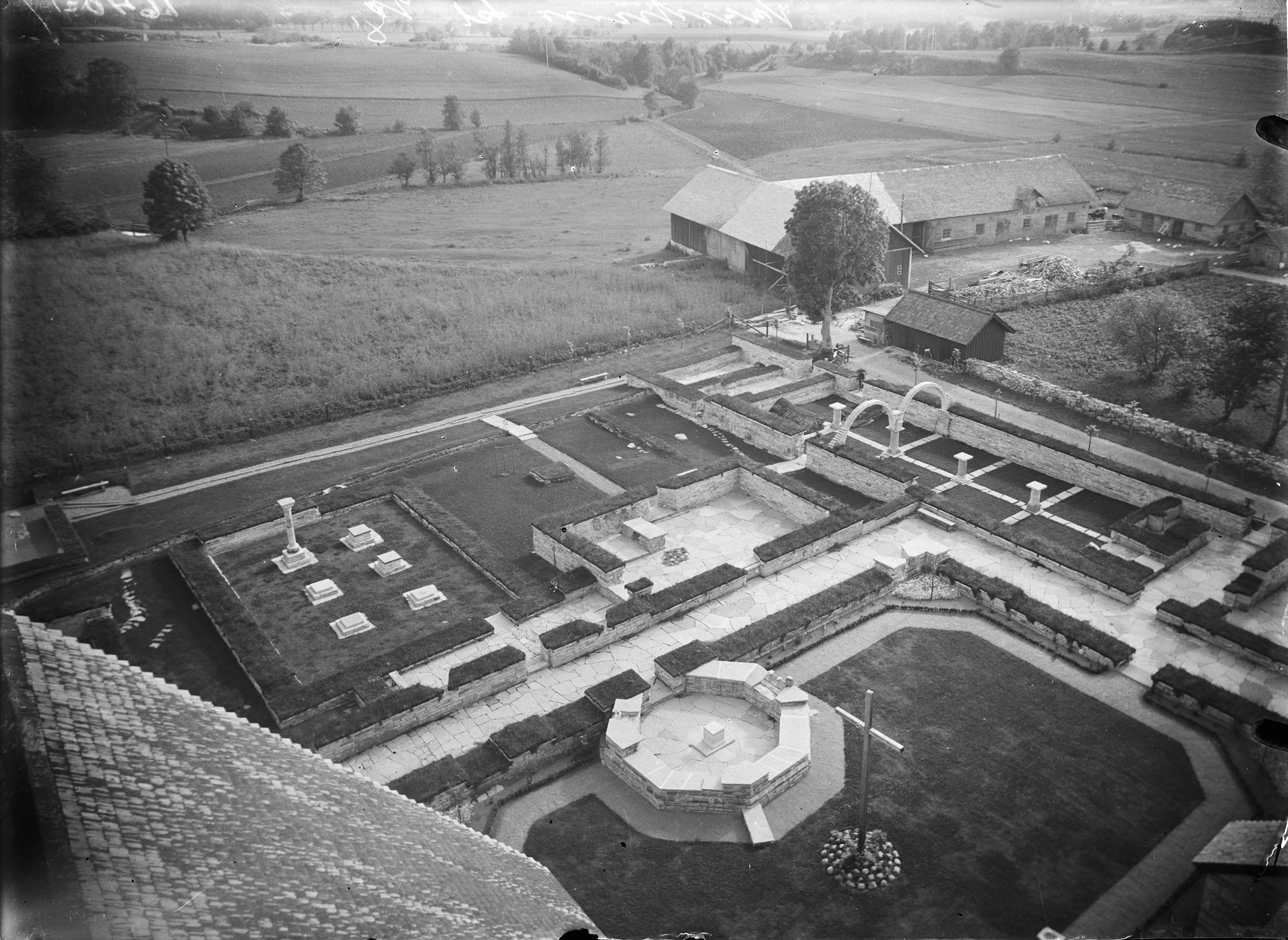 Klosterområdet från kyrkans torn, de sydvästra delarna. Från nordöst.