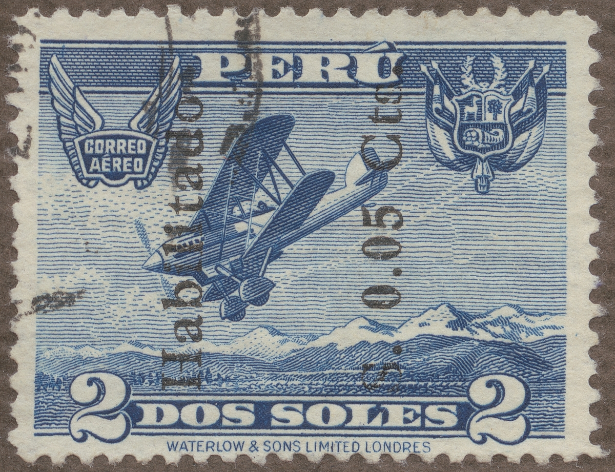 Frimärke från Peru, 1934. Motiv av En-motorigt biplan