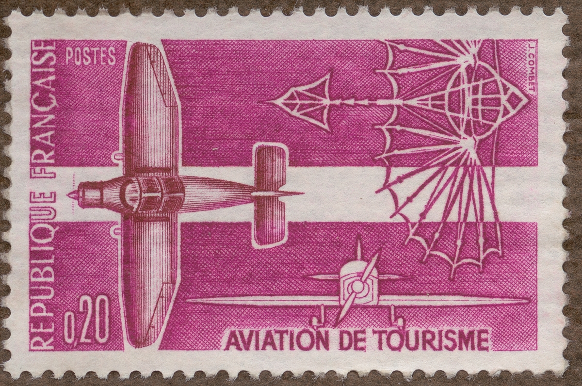 Frimärke från Frankrike, 1962. Motiv av Stiliserade flygplans modeller "-Propaganda för turistresor med flyg-"