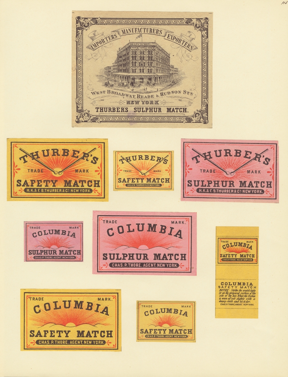 Etiketter för tändsticksaskar, från Svenskt Industri- och Handelsmuseum.
