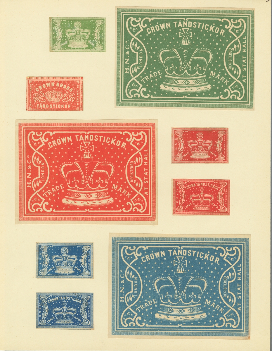 Etiketter för tändsticksaskar, från Svenskt Industri- och Handelsmuseum.