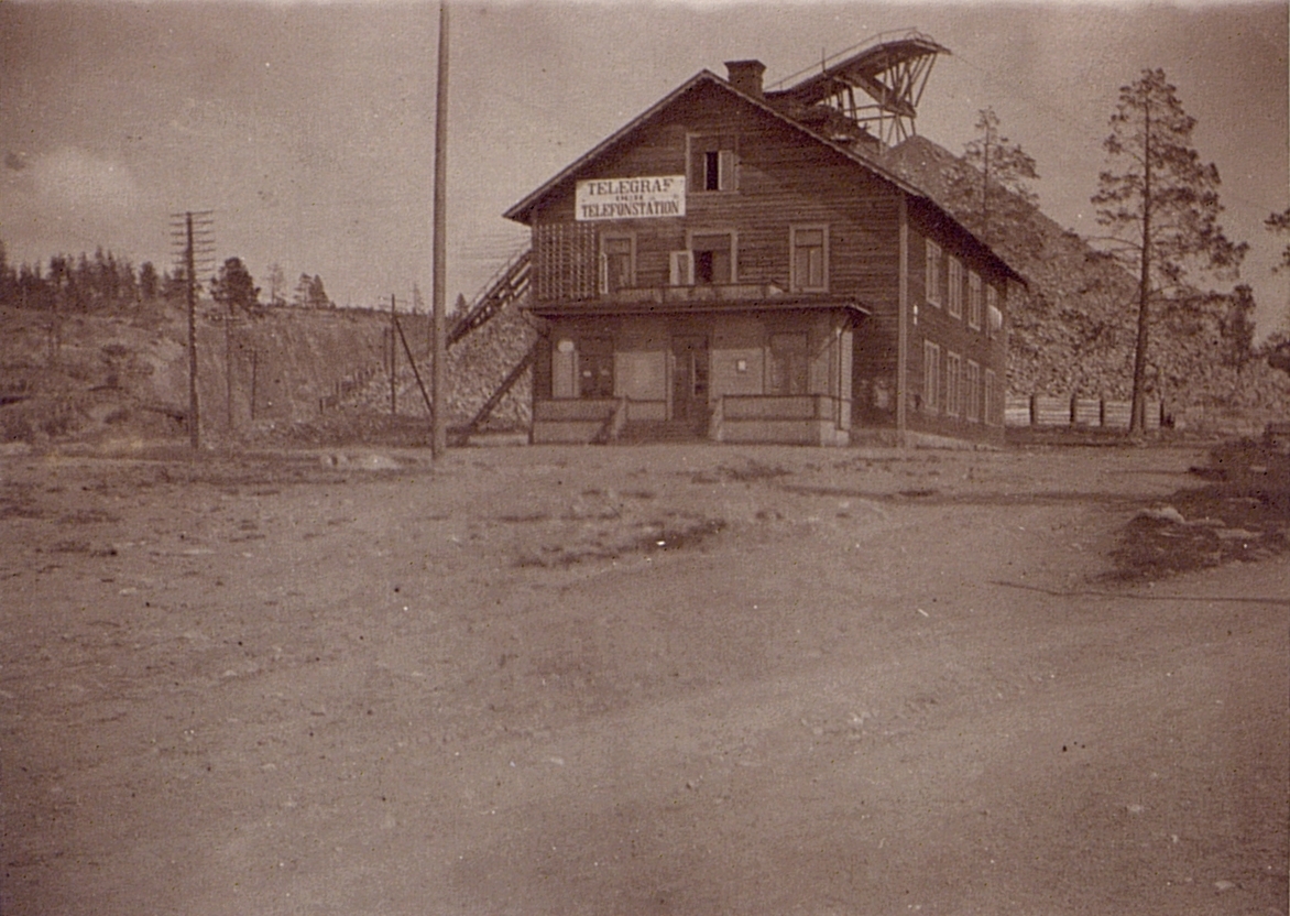 Malmberget, Nederkalix, Nordmaling, telefonnät och stationei omkr. sekelskiftet 1900. (Telefonstationen. Malmberget 1900).