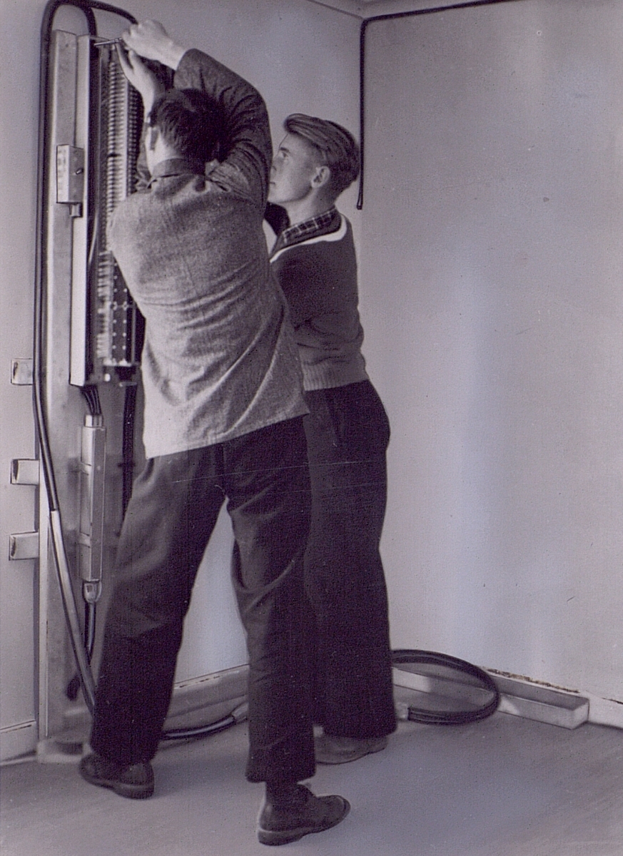 Montering av växel: Sedan inledningskabeln utstuckits genom kabelintaget, som skall vara iordningställt i förväg, uppreses och fastskruvas korskopplingen. Observera att även korskopplingsförbindelserna äro utförda på verkstaden, dit erfoderliga uppgifter härför insänts.
