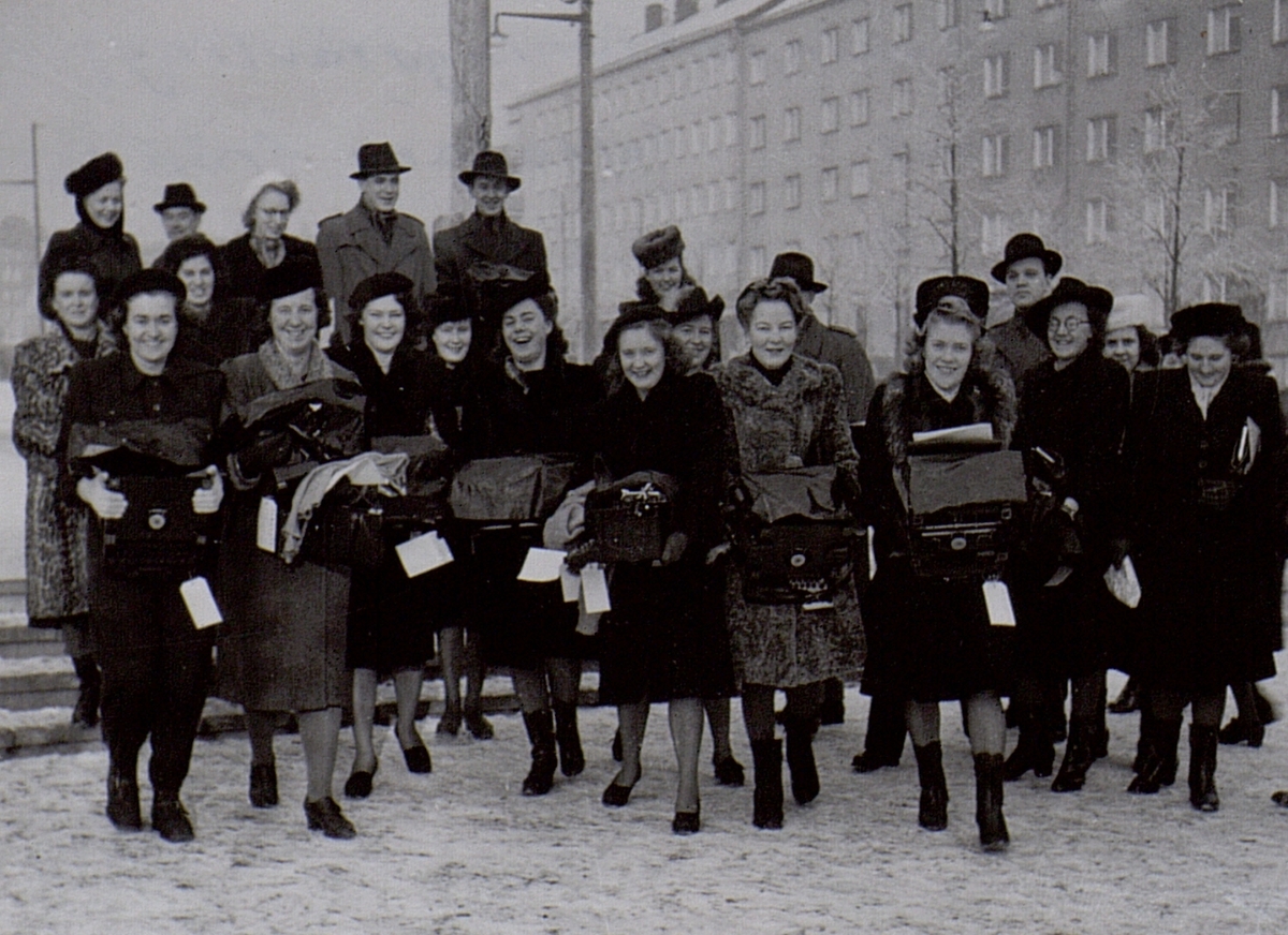 Dagens Nyheters skrivmaskinstävling 1944 i Eriksdalshallen. Deltagare från Undervisningsanstalten.