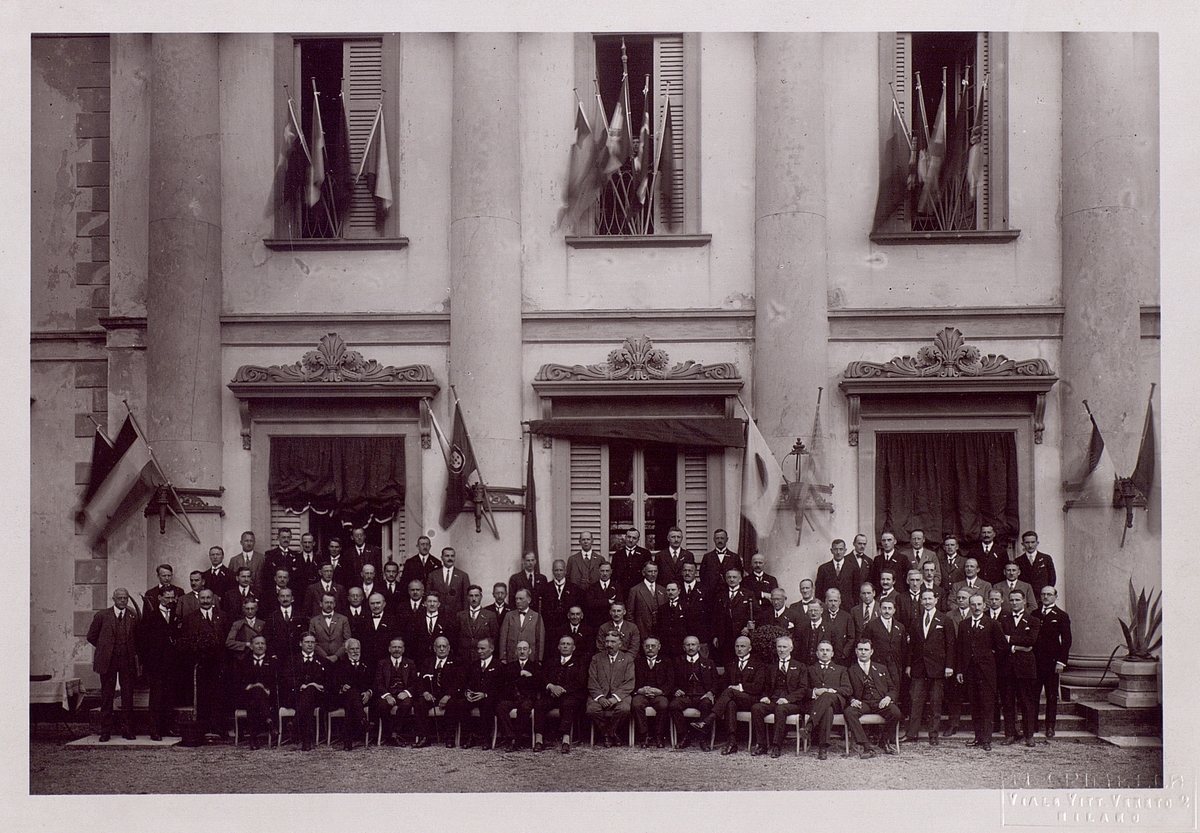 Internationell sammankomst (möjligen i Milano) med bl.a. Lignell och Hallgren.