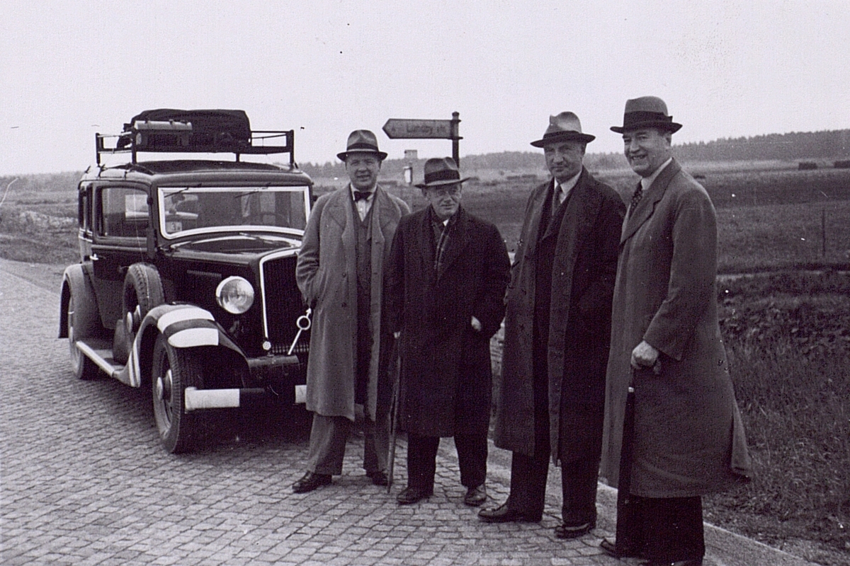 Från Västeråsbranden år 1942. H. Thunell, J.A. Lundgren, H. Eriksson och A. Holmström.