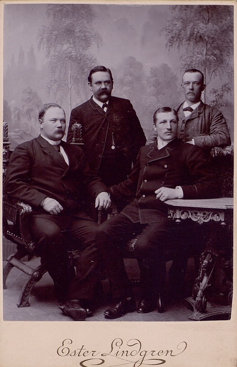 Distriktsingenjör Fredrik Nyström, telefondirektör Lars Erik Ekeberg och G.A. Ternberg. Fotot taget mellan 1889-1894.