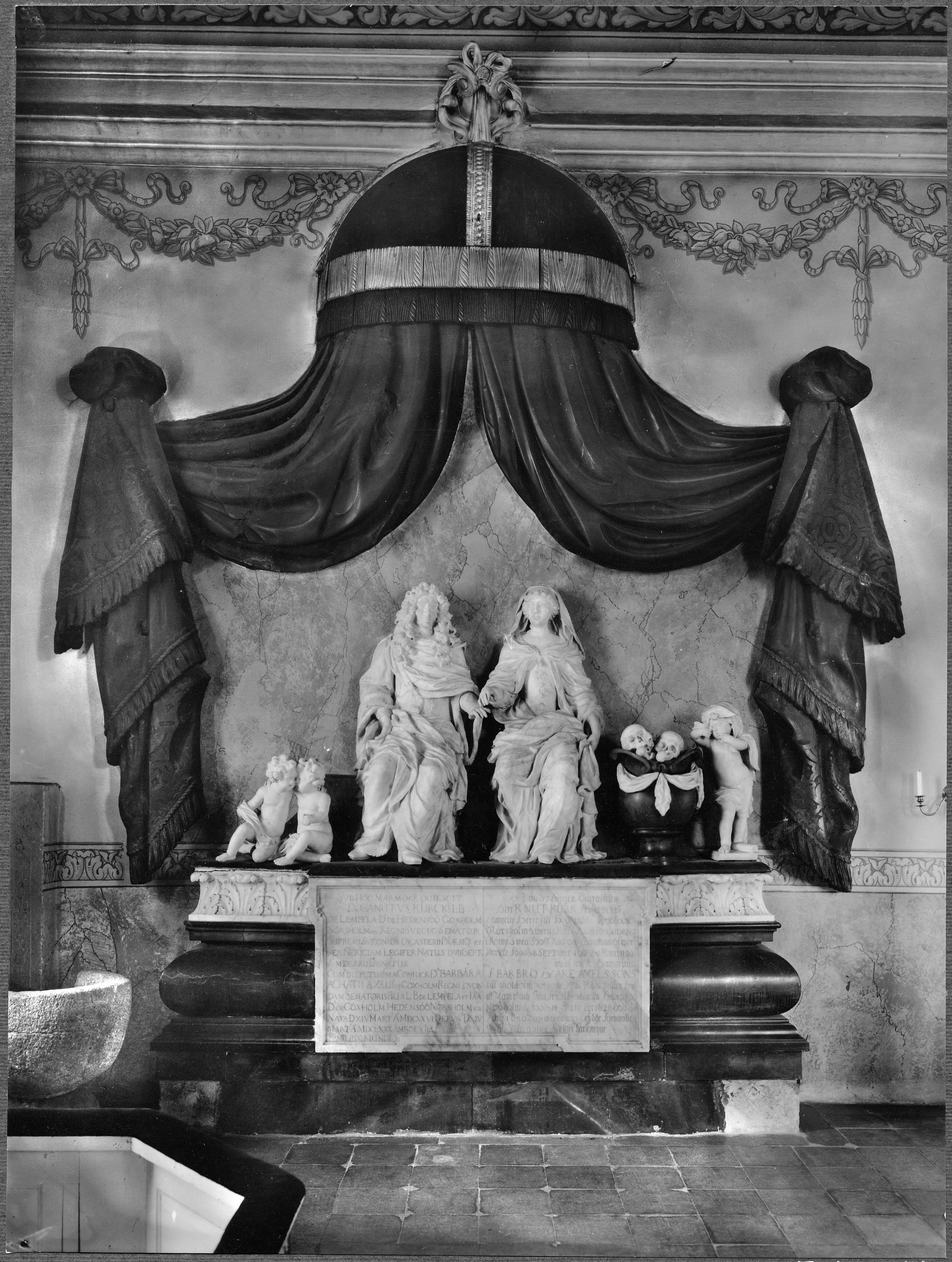 Gravmonument över riksrådet Knut Kurck död 1690. Tillverkat i Antwerpen av flamländske bildhuggaren Nicolaus Millich.