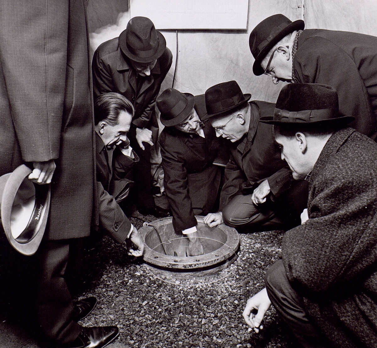 Från invigningen av klenkoaxialkabeln Skellefteå - Vilhelmina d. 7/10 1966. Inspektion av förstärkarbrunn.