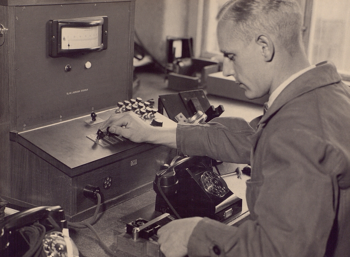 Nynäshamn. Televerkstaden, okänt år. Test av telefonapparat.