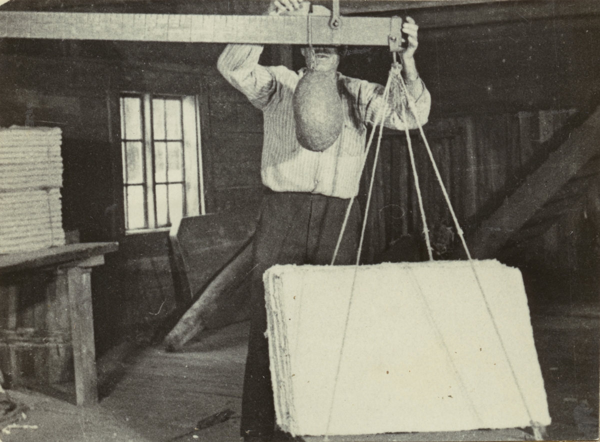 Ösjöfors Handpappersbruk, Småland. Vägning av papper.