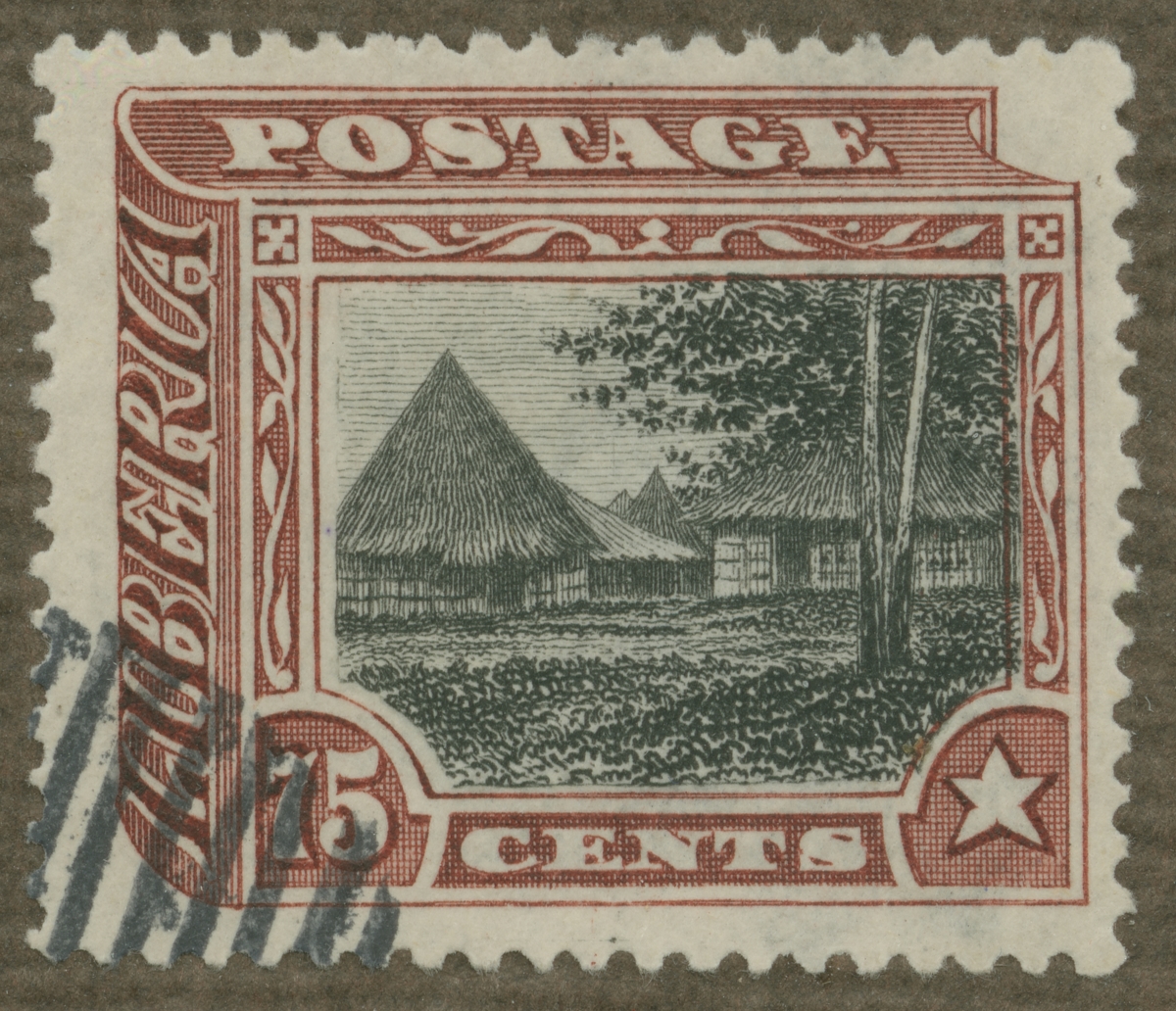 Frimärke från Maryland, Liberia, 1909. Motiv av Hyddor i by.