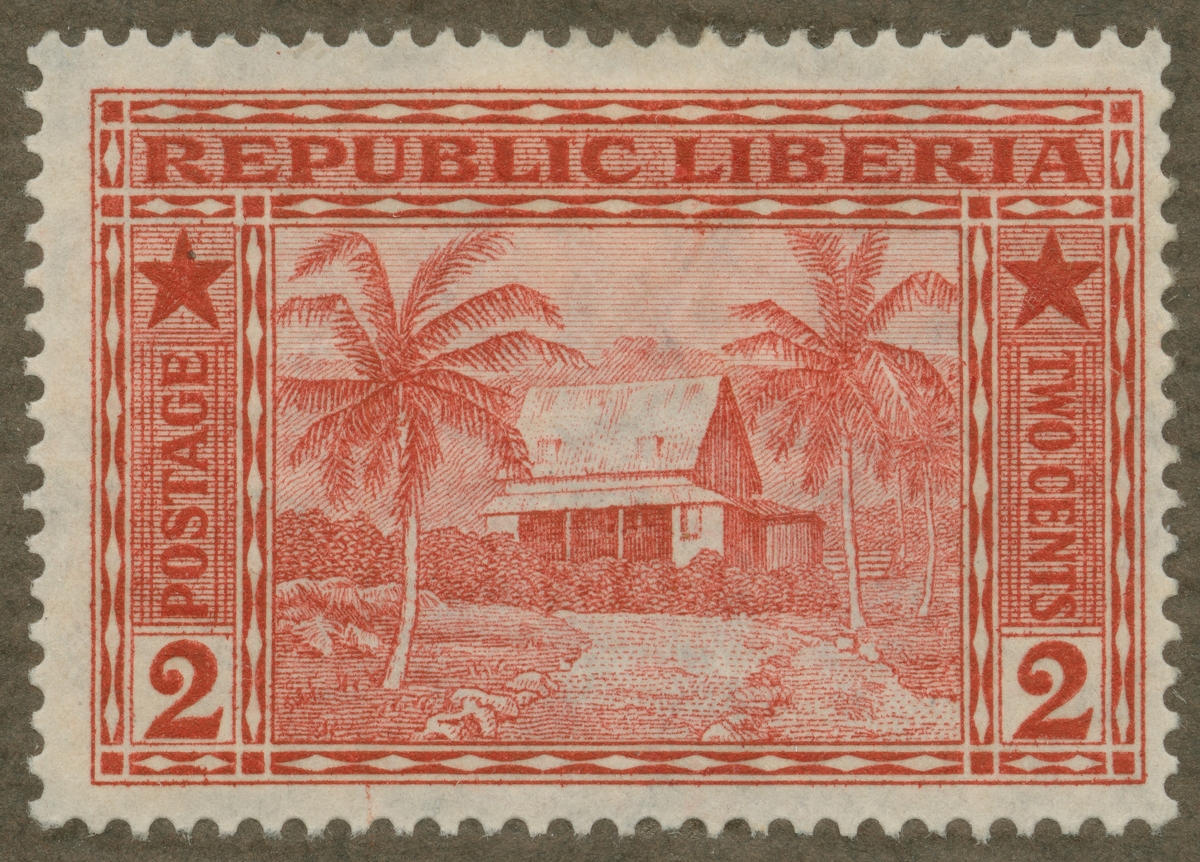 Frimärke från Liberia, 1915. Motiv av Hus i Liberia.