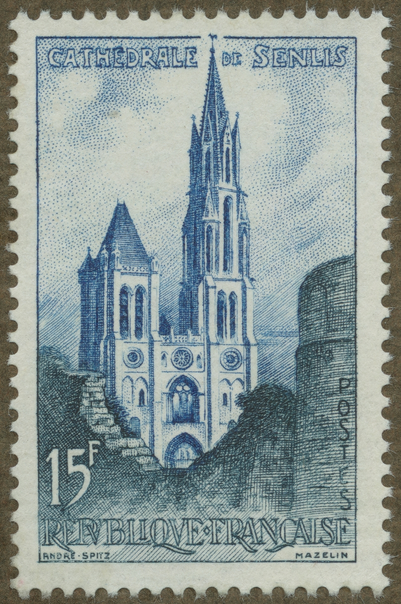 Frimärke från Frankrike, 1958. Motiv av Katedralen i Senlis.