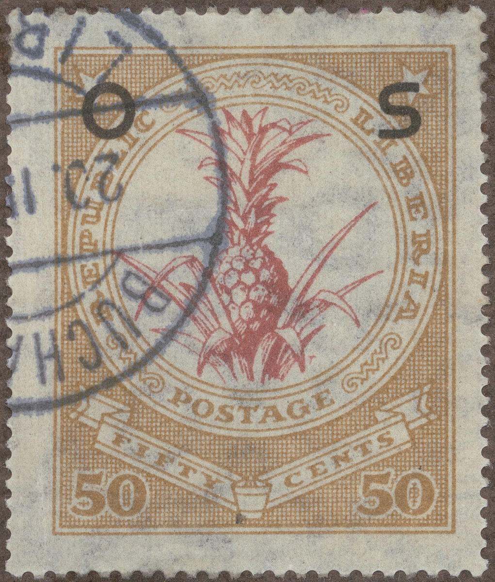 Frimärke från Liberia, 1923. Motiv av ananasplanta.
