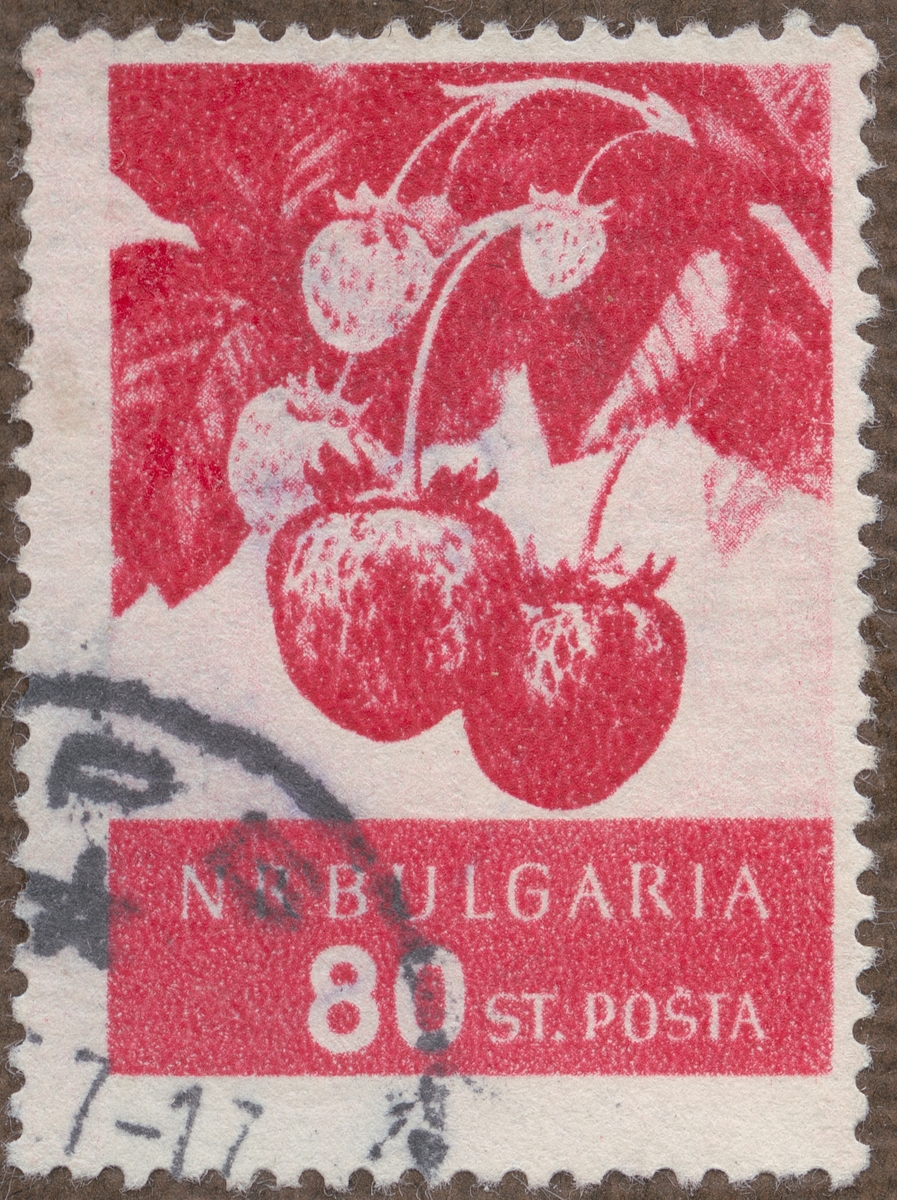 Frimärke från Bulgarien, 1956. Motiv av jordgubbar. "Frukt serie".