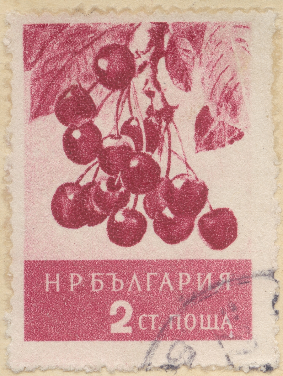 Frimärke från Bulgarien, 1956. Motiv av körsbärsklase.