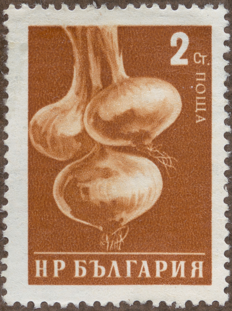 Frimärke från Bulgarien, 1958. Motiv av lökar. "Legymer".