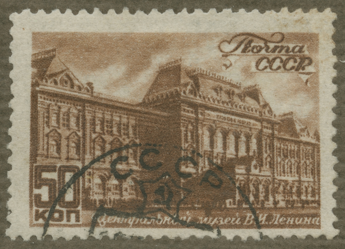 Frimärke från Ryssland, 1941. Motiv av Leninmuseet. "5-årsminne av dess grundande".