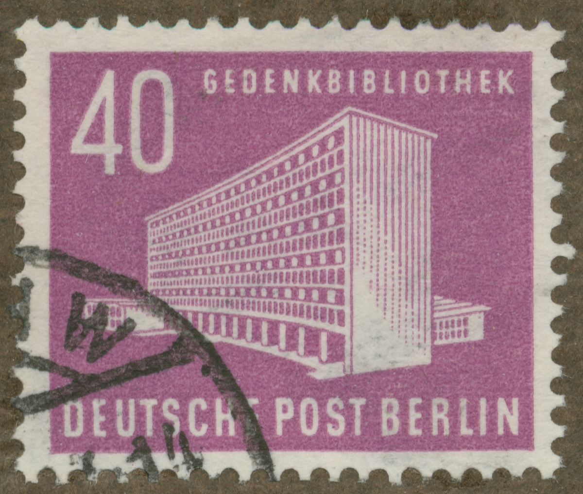 Frimärke från Tyskland, 1953. Motiv av Centralbiblioteket i Berlin.