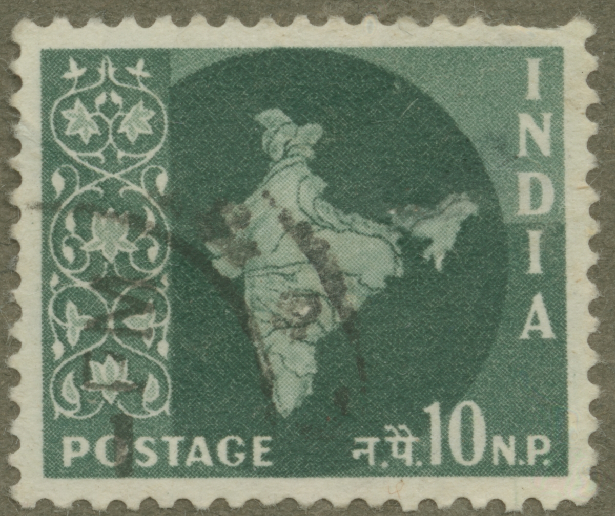 Frimärke från Indien, 1957. Motiv av karta över Indien.