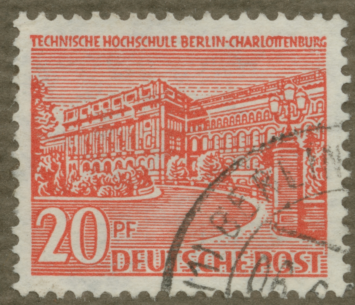 Frimärke från Tyskland, 1949. Motiv av Tekniska Högskolan Berlin - Charlottenberg.