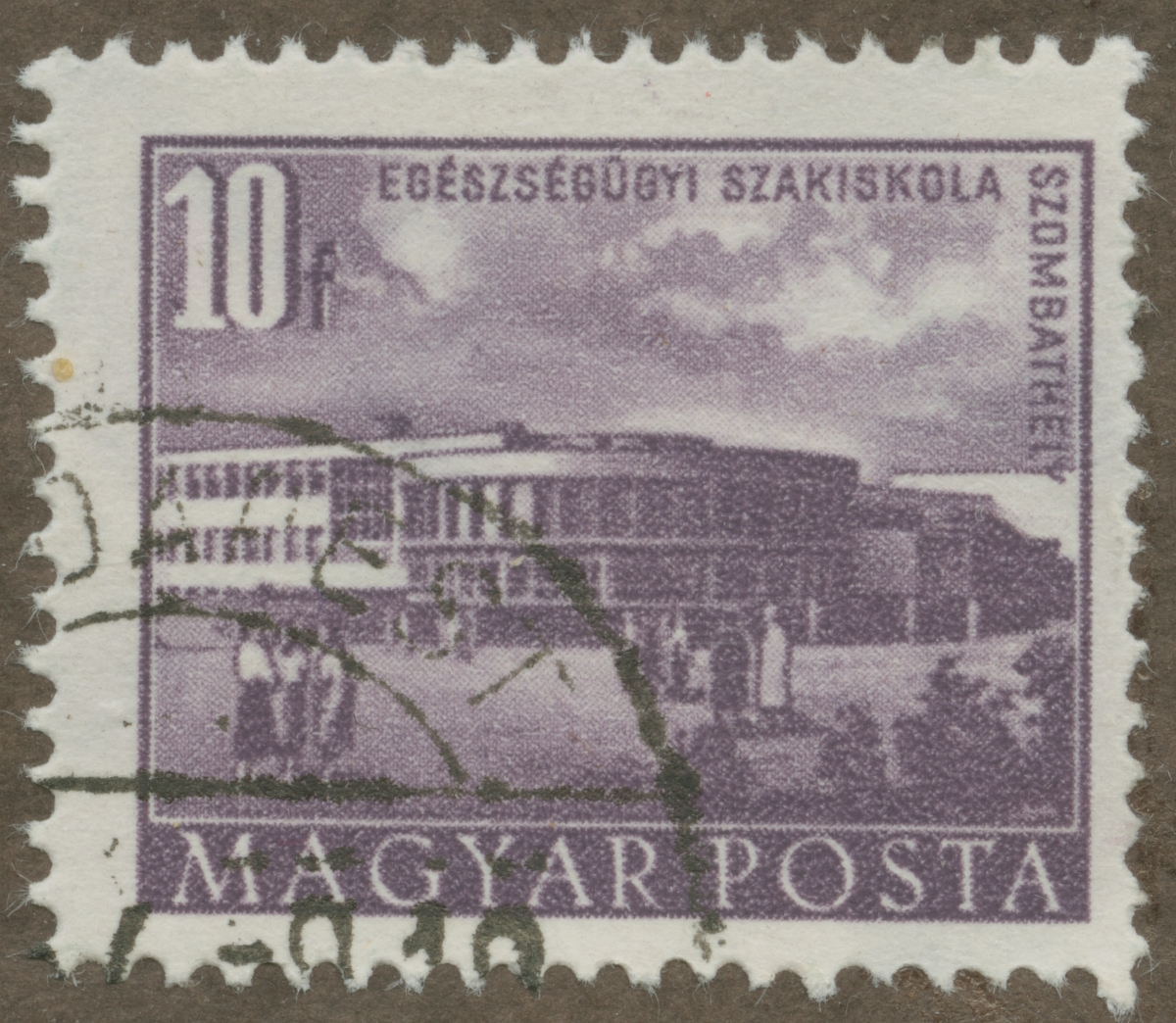 Frimärke från Ungern, 1953. Motiv av Medicinska Högskolan i Szombathley.