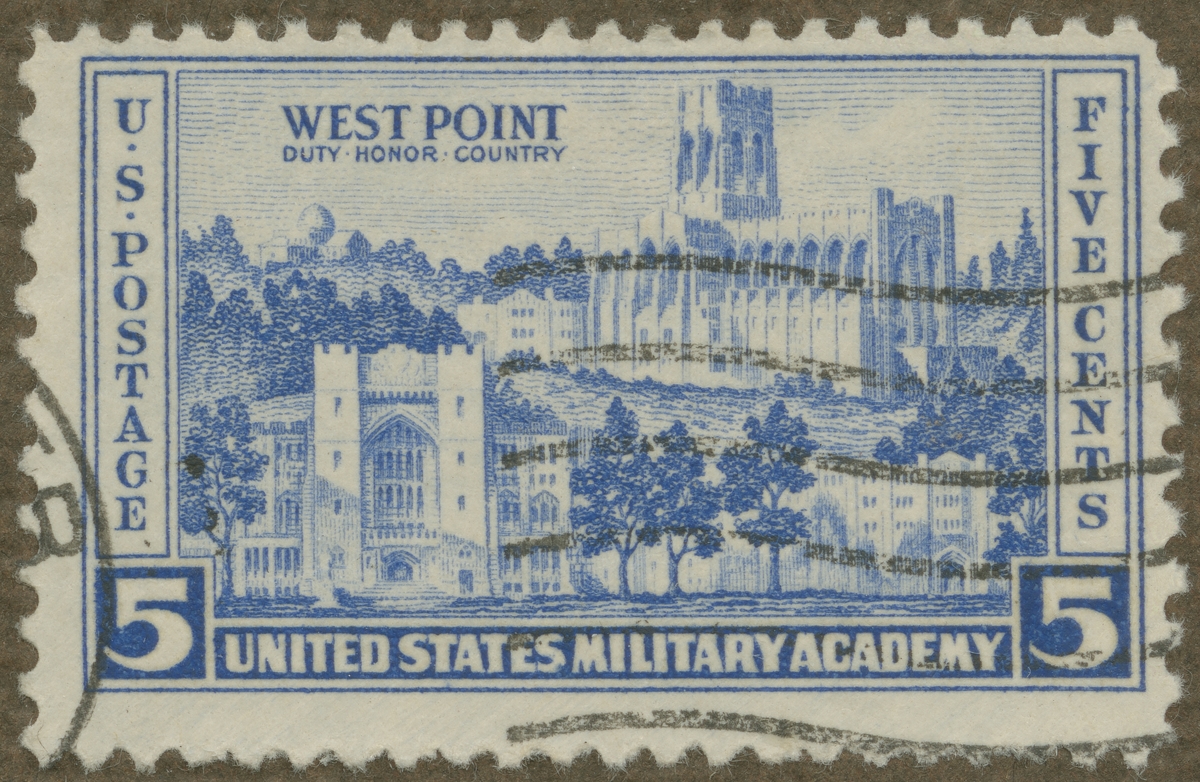 Frimärke från USA, 1936. Motiv av USA:s Militärakademi, West Point, NY.