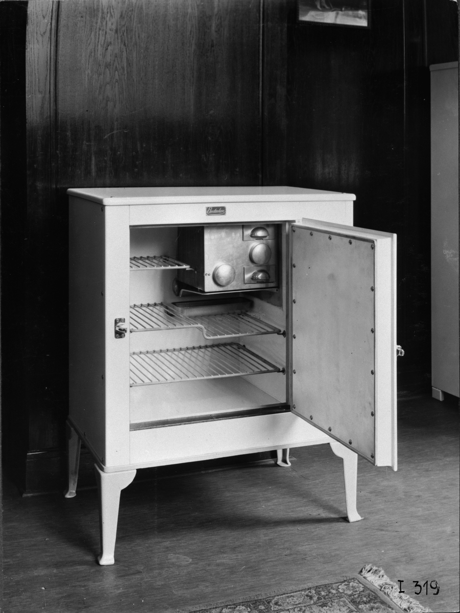 Elektrolux-Laboratoriet. Vitt D4-skåp. Elux utställningen, Stockholm.