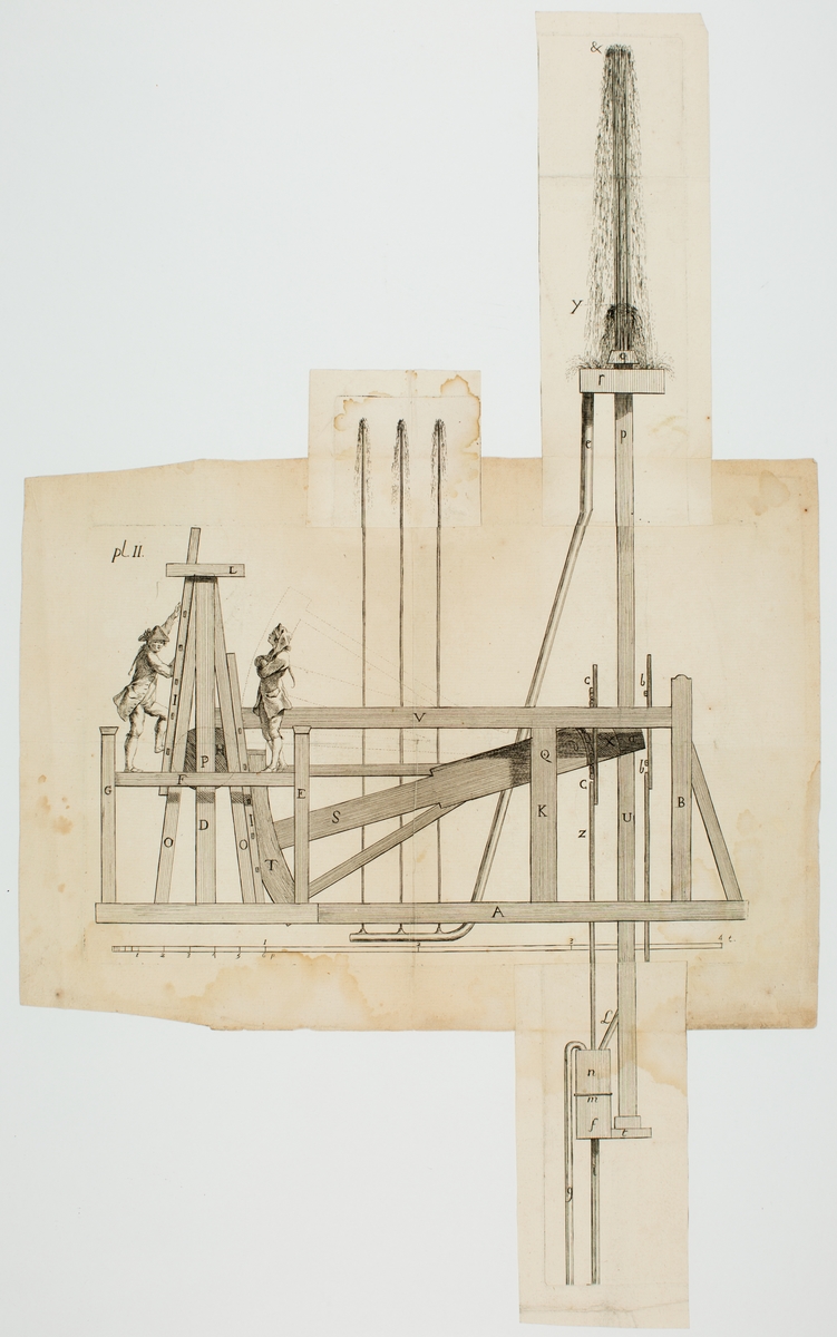 Ritning. Vattenpumpmaskin. Ur Carl Johan Cronstedts samling.