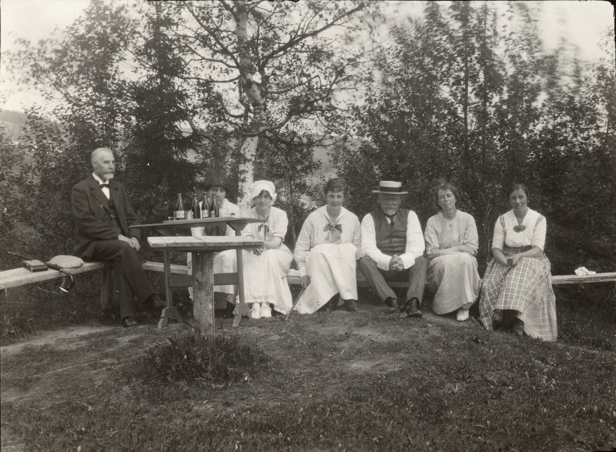Titel: Pick-nick i det gröna. Mannen i hatt och mustasch är troligen Ansgar Betulander sommaren 1916. Ur album.