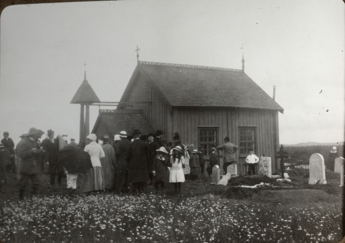 Folksamling utanför Kapell. Sommaren 1916. Ur album.