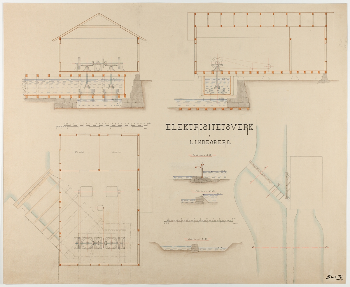 Ritning över förslag till Lindesbergs elektricitetsverk.