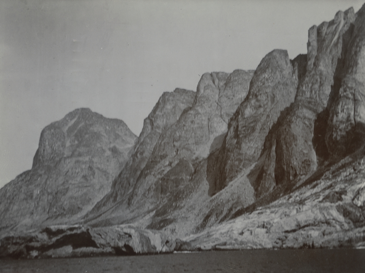 Fotografi från expedition till Grönland. Motiv av berget Sánerut beläget i den sydvästra delen av Grönland. Bilden är tagen vid bergets norra sida där havet ligger nära.