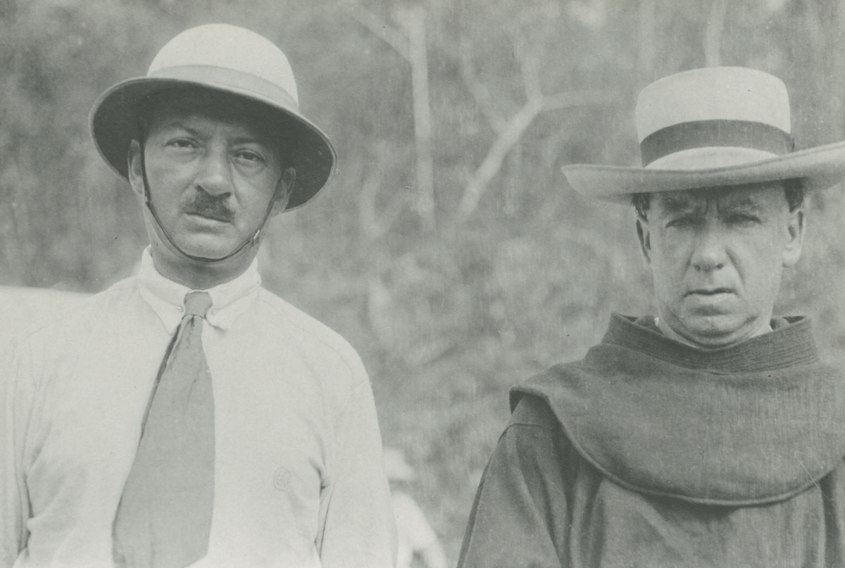 Fotografi från expedition till Peru 1920. Porträtt av två man med hattar. Mannen till vänster kan vara kartografen Nils Pallin.
