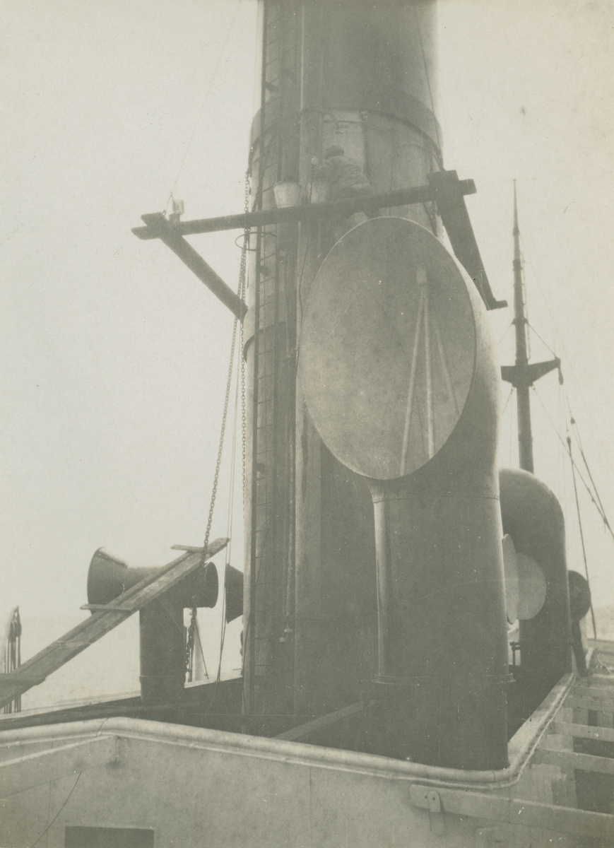 Fotografi från expedition till Peru 1920. Närbild av mast på skepp.