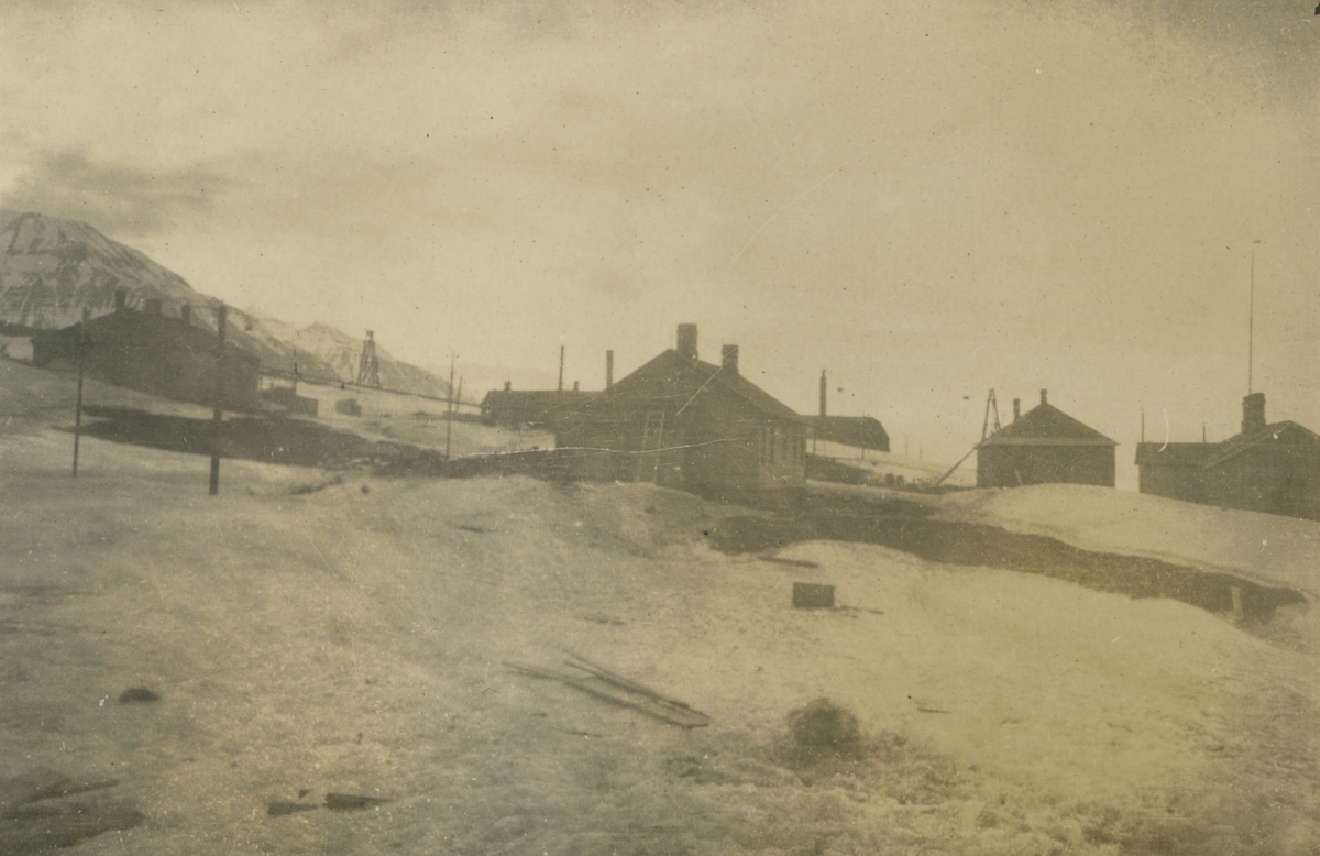Fotografi från expedition till Spetsbergen. Motiv av Sveagruvan och dess hus.