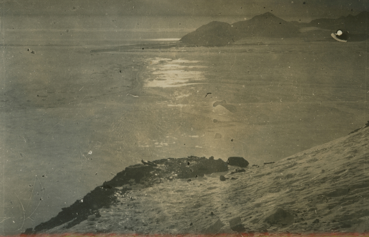 Fotografi från expedition till Spetsbergen. Vy över istäckt landskap och berg.